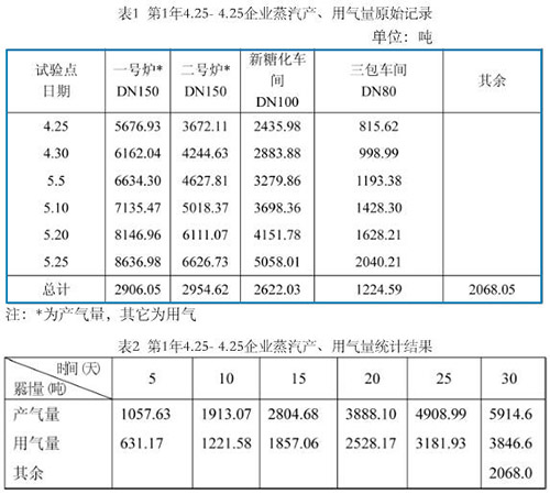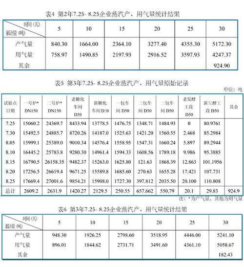 (1)綜上數(shù)據(jù),圖表可看出煙氣流量計(jì)測(cè)量飽和蒸汽,流量數(shù)據(jù)顯示清晰,穩(wěn)定可靠,其產(chǎn)、用氣量隨著流量計(jì)的完善,其差值變小了,也即使用部門(mén)越多,其消耗越少。